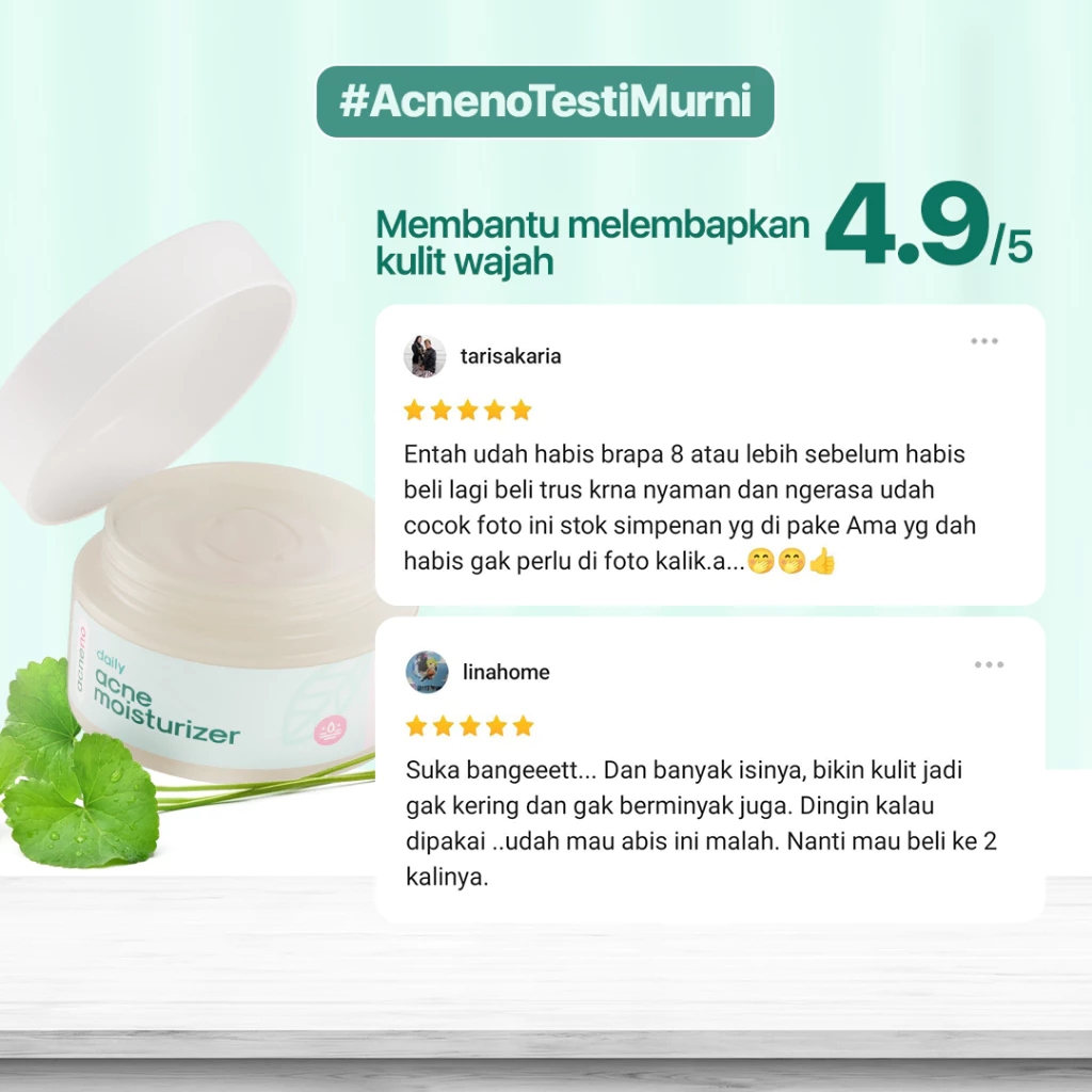 [PROMO TERBATAS] Acneno Daily Acne Moisturizer isi 30gr | Melembabkan Kulit & Memperbaiki Skin Barrier Dengan Kandungan Panthenol & Glyserin | Cocok Untuk Kulit Sensitif | Aman Untuk Bumil & Busui | BPOM Halal Original | Gratis Ongkir