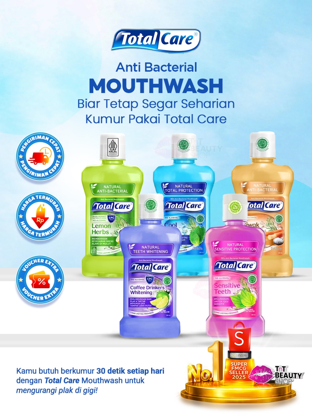 Total Care Mouthwash 250ml - Tanpa Alkohol | TnT Beauty Shop