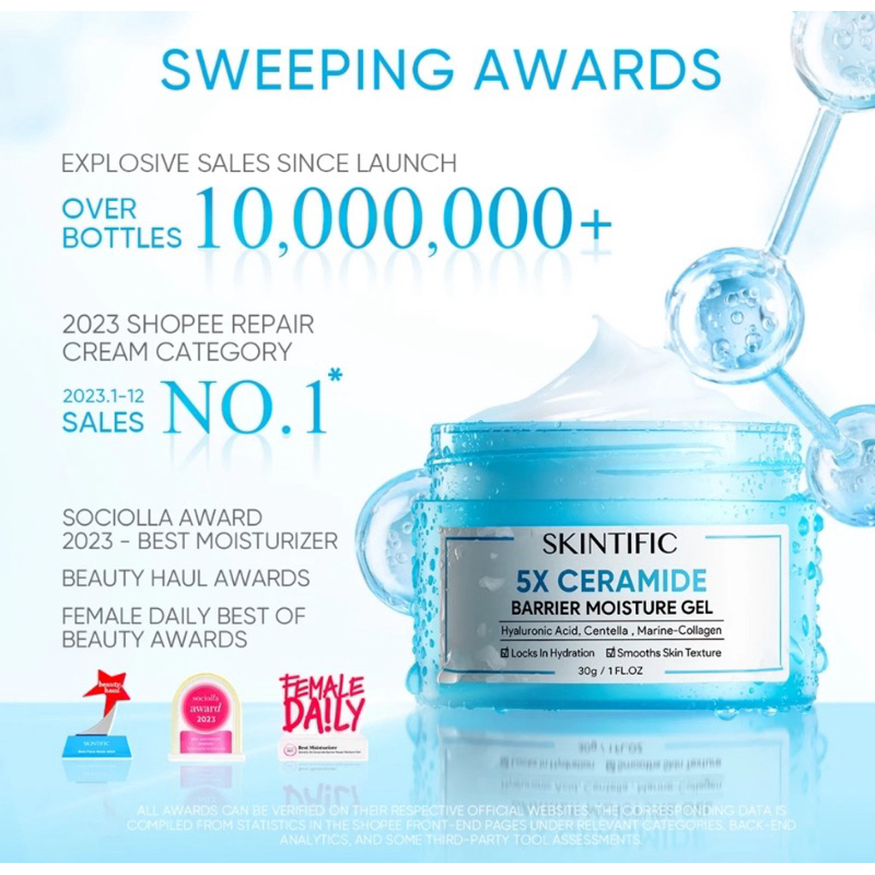 SKINTIFIC - 5X Ceramide Barrier Moisturizer Gel 30g | Cream Pemutih Wajah Calming Whitening Brightening Dark Spot Pelembab Wajah Pemutih Wajah Facial Moisturizer Day Cream Night Cream Skincare BPOM Niacinamide with Centella Marine-Collagen Hyaluronic Acid