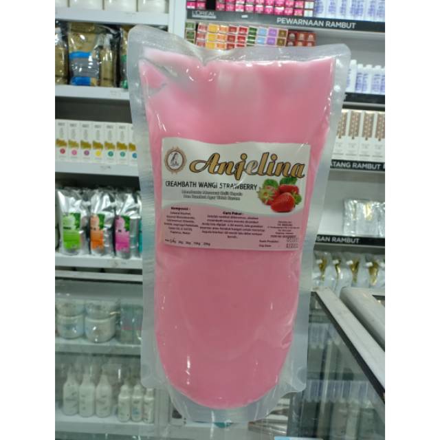 Anjelina creambath 1kg Strawberry/Ginseng/Mint/Avocado/Aloe Vera - Creambath Kiloan Salon