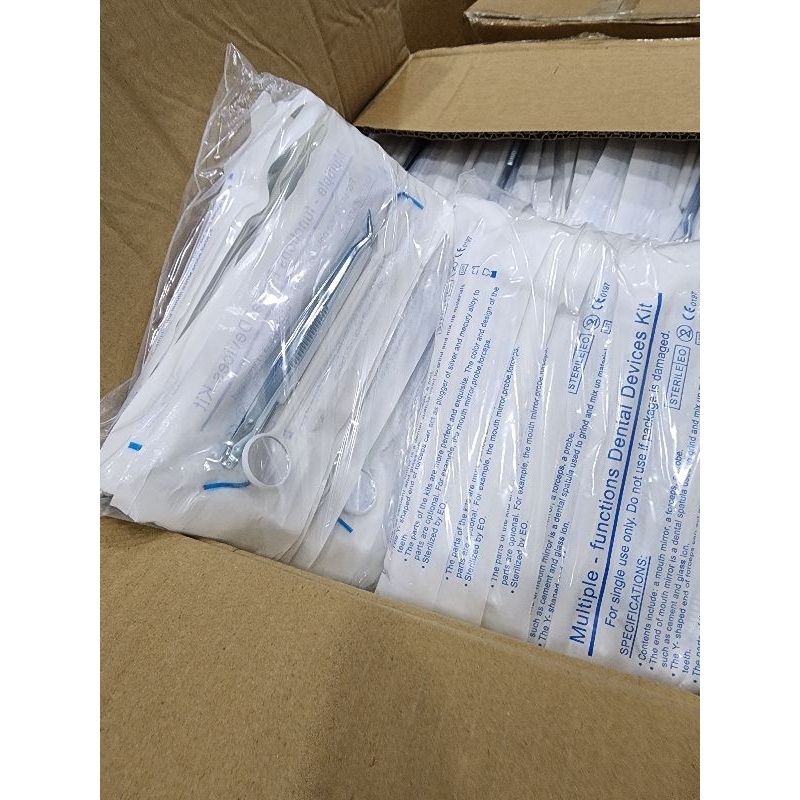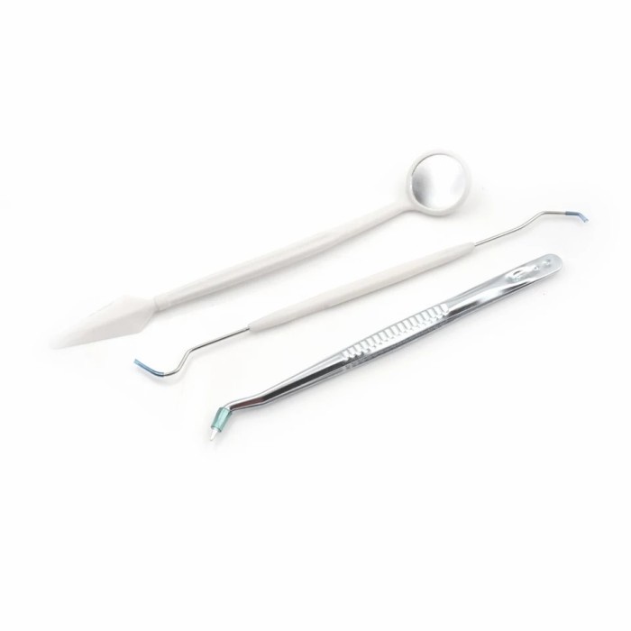 1 set isi 3 pcs alat pemeriksaan standar gigi kaca mulut pinset sonde 3in1