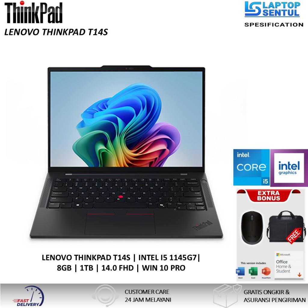 Laptop Murah Lenovo Thinkpad T14S Intel Core i5 - 1145G7 1TB SSD FHD Windows 11 Pro Black