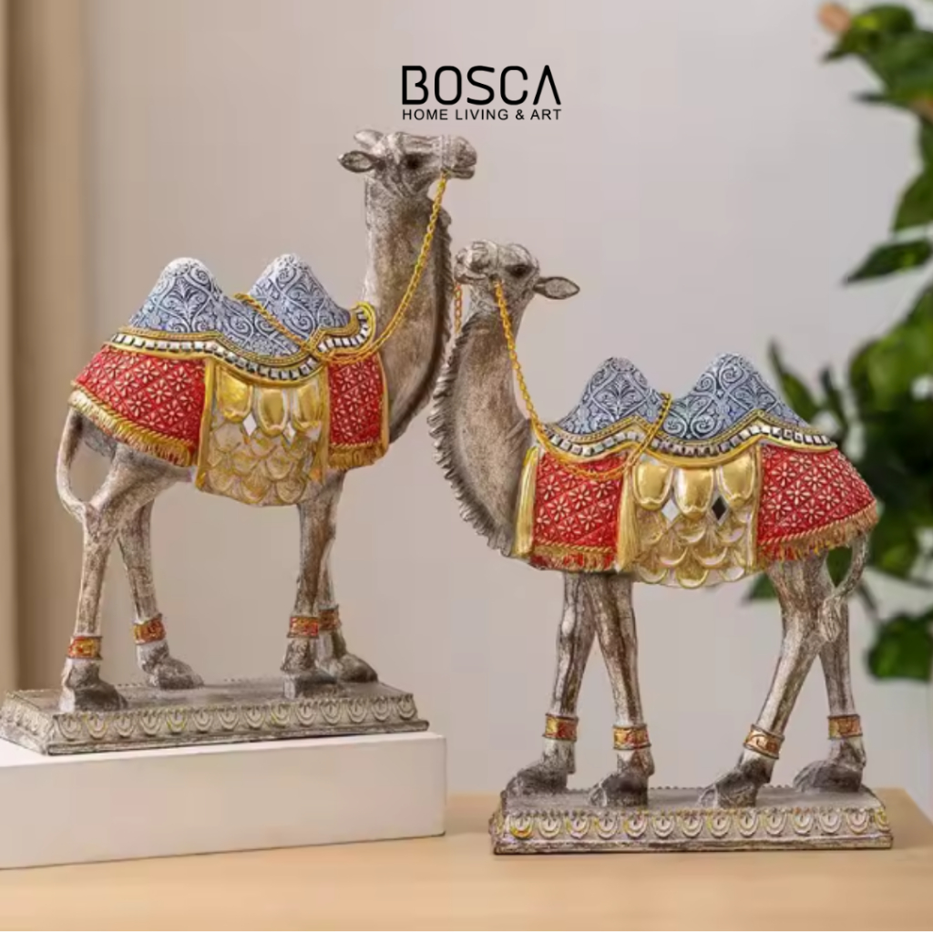 Bosca Living - Camel Ornament Statue / Pajangan Bentuk Unta / Dekorasi Ruangan Idul Fitri Lebaran Home Living Gaya Timur Tengah / Hiasan Pajangan Polyresin / Home Decoration Unik Mewah