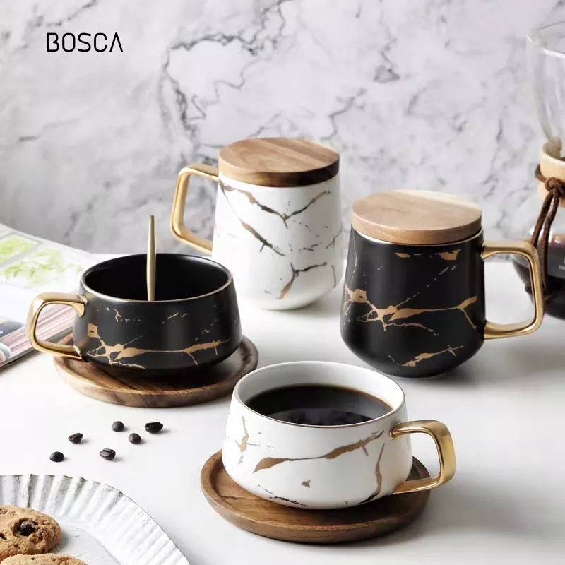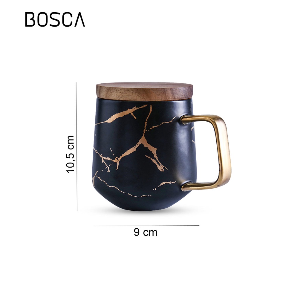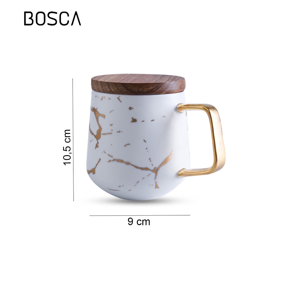 Bosca Living - Gelas Cangkir Motif Marmer / Mug Gold Mewah Dengan Tutup Kayu Luxury Marble Cup Mewah