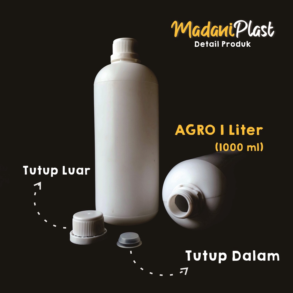 Botol Agro HDPE 1000ml Putih Susu, Tutup Segel, Tebal & Kuat, untuk Pupuk, Sabun, dan Bahan Kimia.