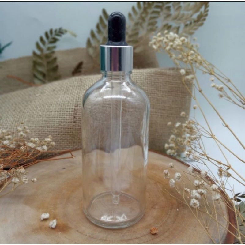 Botol 100ml Kaca Botol Pipet Kaca 100ml Bening Botol Kaca 100ml Ring Gold Karet Putih Ring Silver Karet Hitam