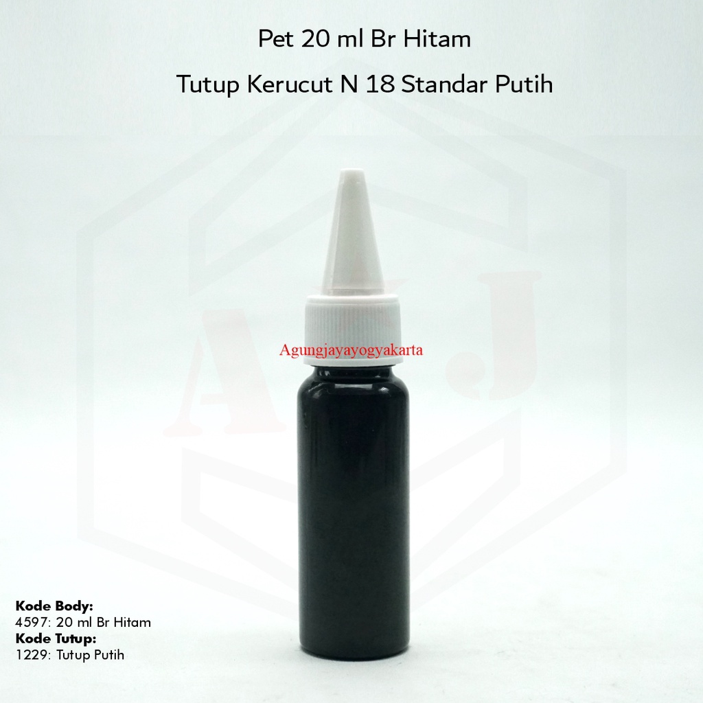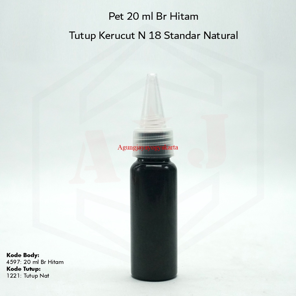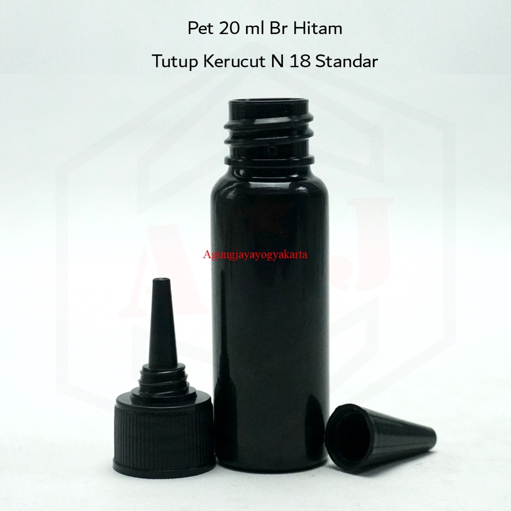 Botol 20 ml Hitam Kerucut Standart / Botol Tinta / Botol Kerucut / Botol Cuka / Botol Hitam