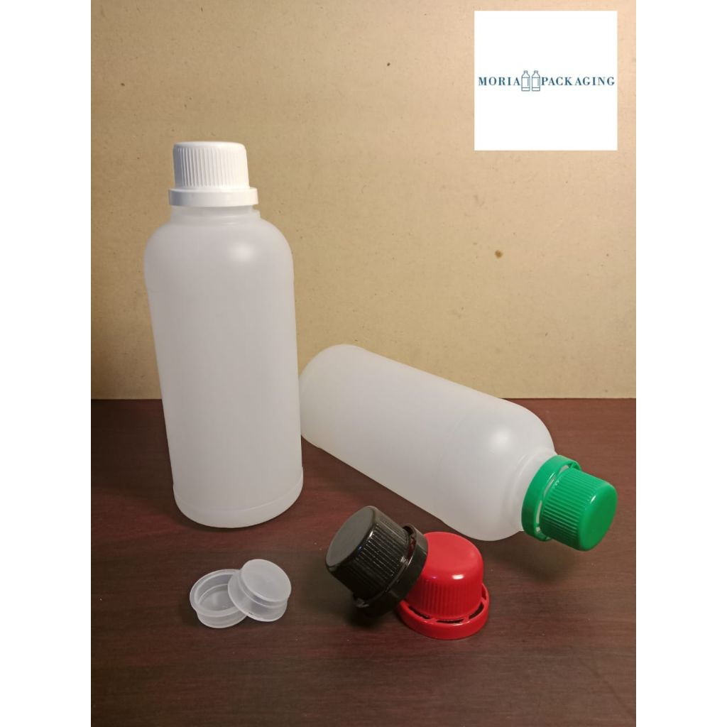 Botol Agro 500ml Transparan HDPE / Botol Labor 500ml / Tutup Agro Merah, Putih, Hijau,Hitam