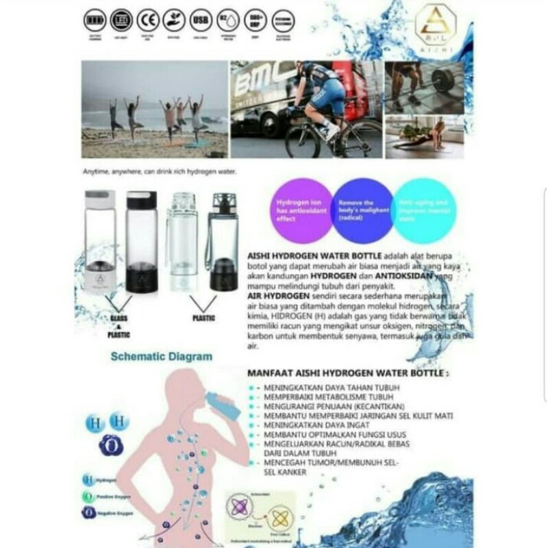 Botol Air Hidrogen Inhaler Hydrogen Water Bottle Hexagonal Inhaler Aishi