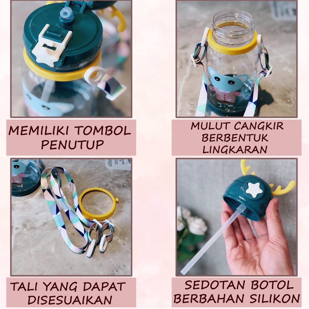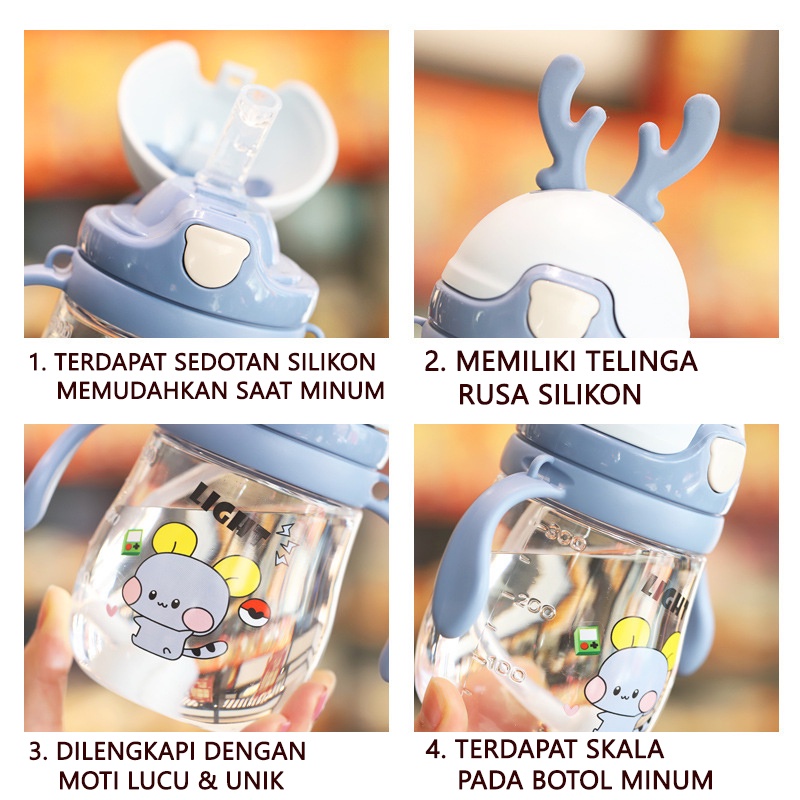 Botol Air Minum Anak Bentuk Unik Lucu Imut Telinga Hewan Lucu dengan Sedotan BPA FREE Botol Anak