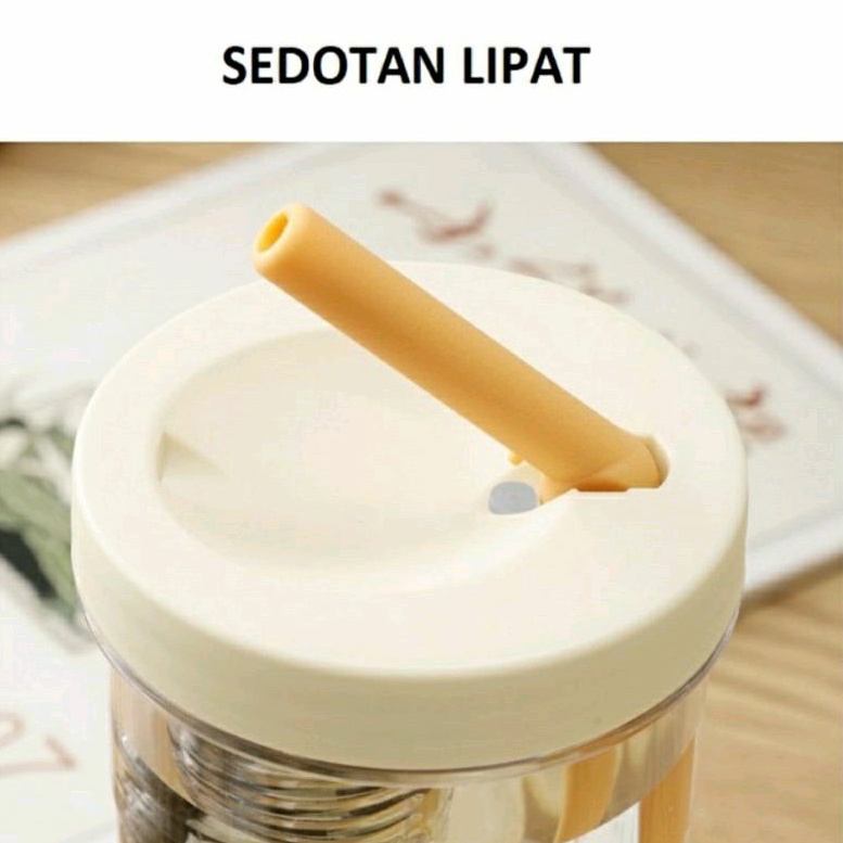 Botol Air Minum Bening Infused Water Botol Air Minum Sedotan Lipat Botol Minum Buah