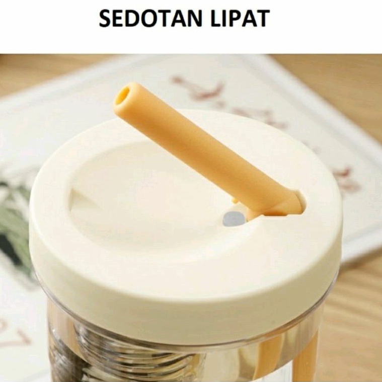 Botol Air Minum Infused Water Botol Minum Transparan Sedotan Lipat Botol Minum Buah