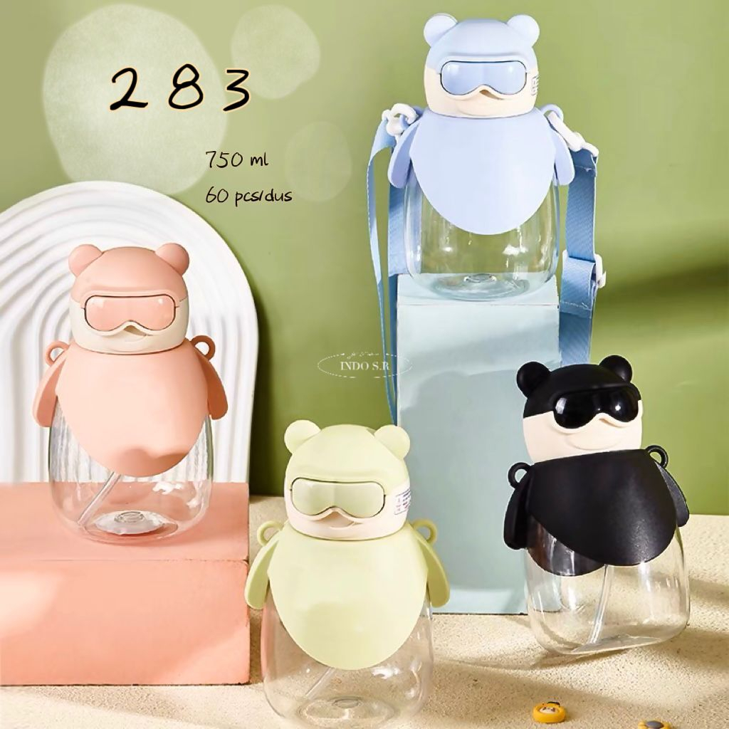 Botol Air Minum Portable Motif Beruang Kacamata Lucu Kapasitas 750ml BPA FREE