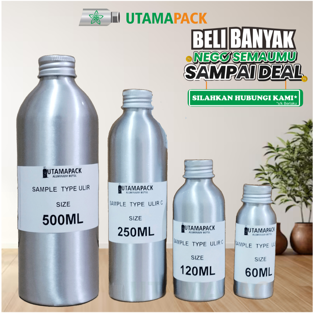 Botol Aluminium 250ml dengan Tutup Aluminium Ulir baru 100%
