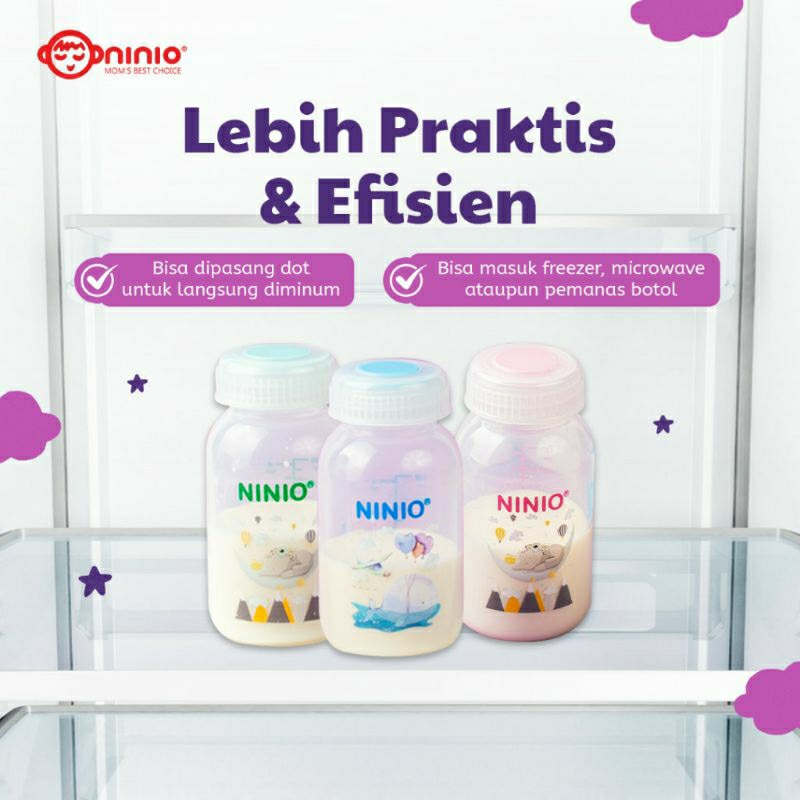 Ninio Botol Asi BPA Free 150ml 120ml Anti Pecah BPA Free Milk Bottle Storage Botol Penyimpanan Asi