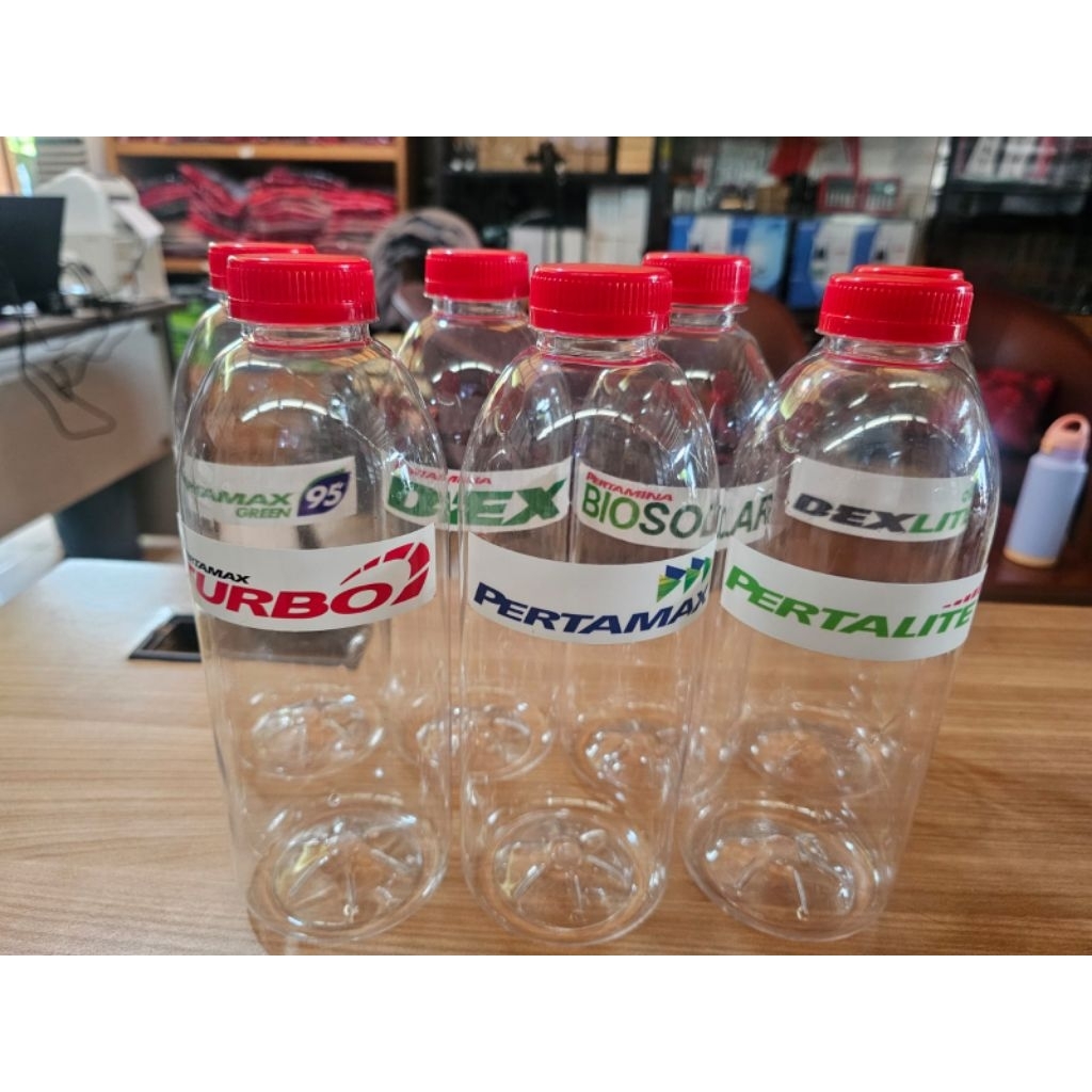 Botol Display BBM Botol Sample Sampel BBM Bensin Pertamax Pertalite Pertamax Turbo Solar Dexlite Bio Solar Botol Plastik BBM Botol Kaca BBM 1Liter