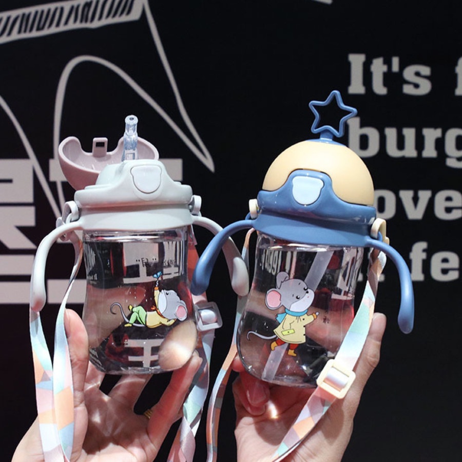 Botol Jerami Anak/Botol Minum Anak/Karakter rabbit Bear Tutup Clip/botol Kartun 250 ML