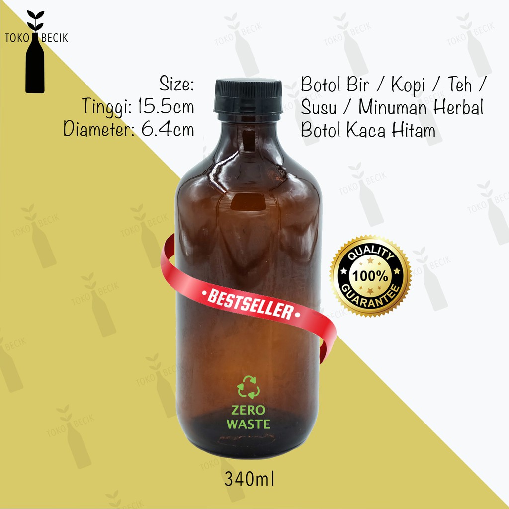 Botol Kaca Hitam Minuman 340ml - Juice Jus / Coffee Kopi / Milk Susu / Beer Bir / Jamu / Kombucha