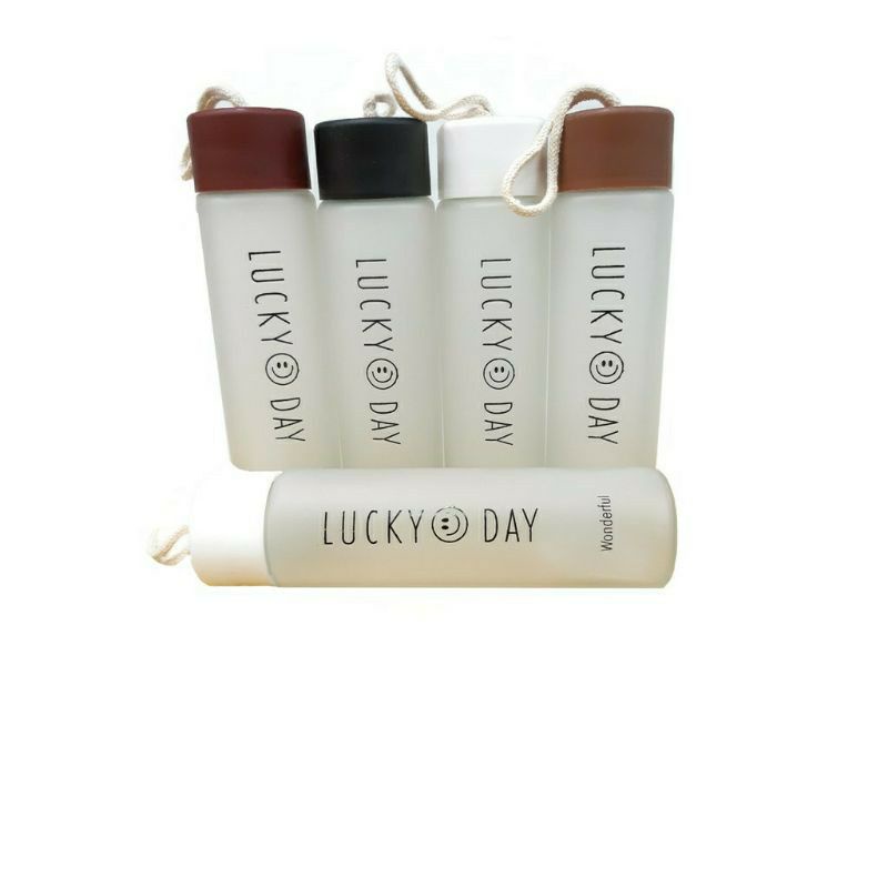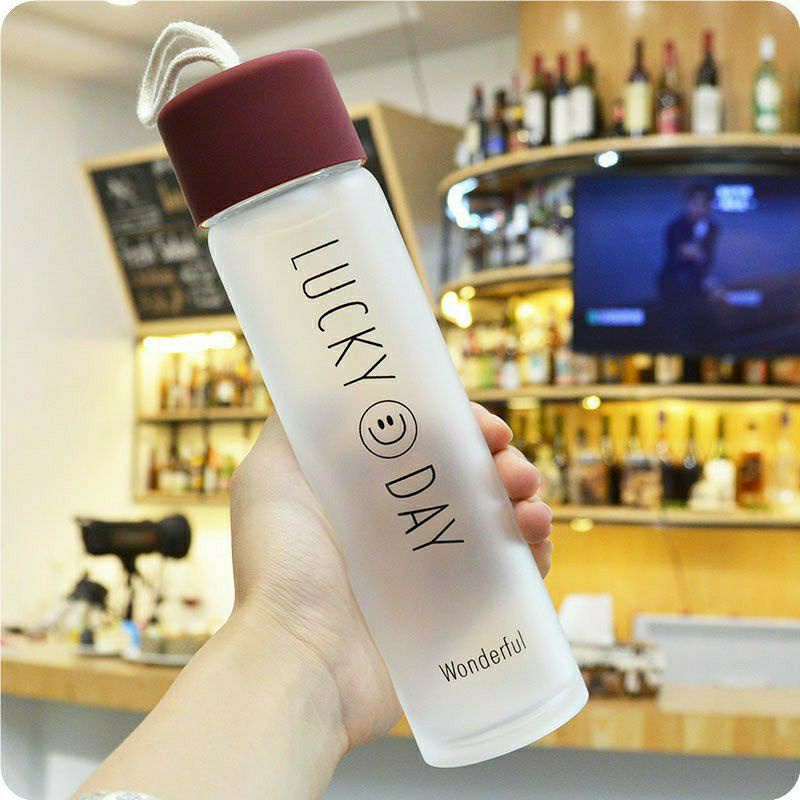 Botol Kaca Lucky Day Botol Minum 350ml Botol Air Kaca + Gantungan
