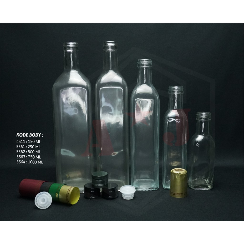 Botol Kaca Square/Botol Vco/Botol Kaca Kotak Madu/Sirup 150 Ml/250 Ml/500 Ml/Yk