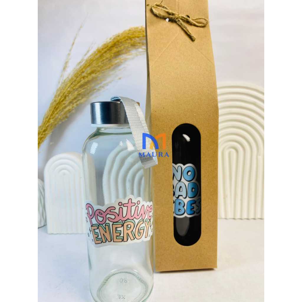 Botol Bening 420ml Tumbler Minum Kaca Infuser Water Termos Beling Sablon Warna Souvenir