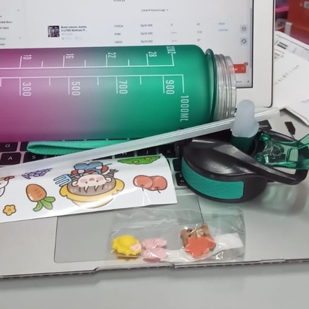 Botol Minum 1 Liter Slim Botol Minum Viral 1000ml Gradasi Botol Minum 3D