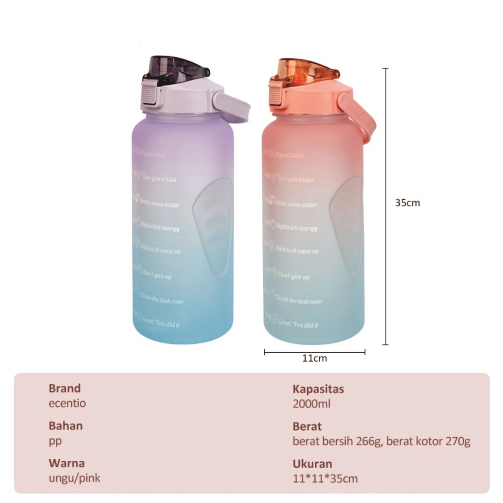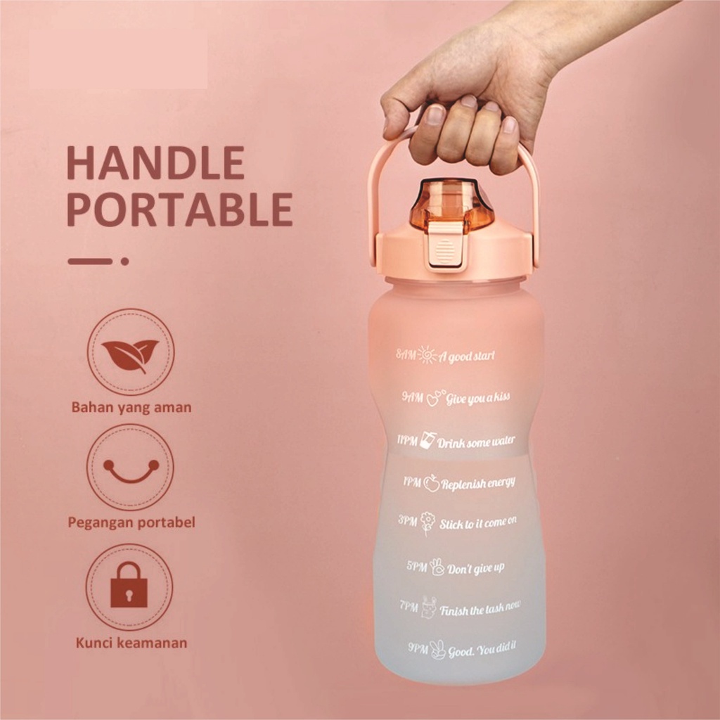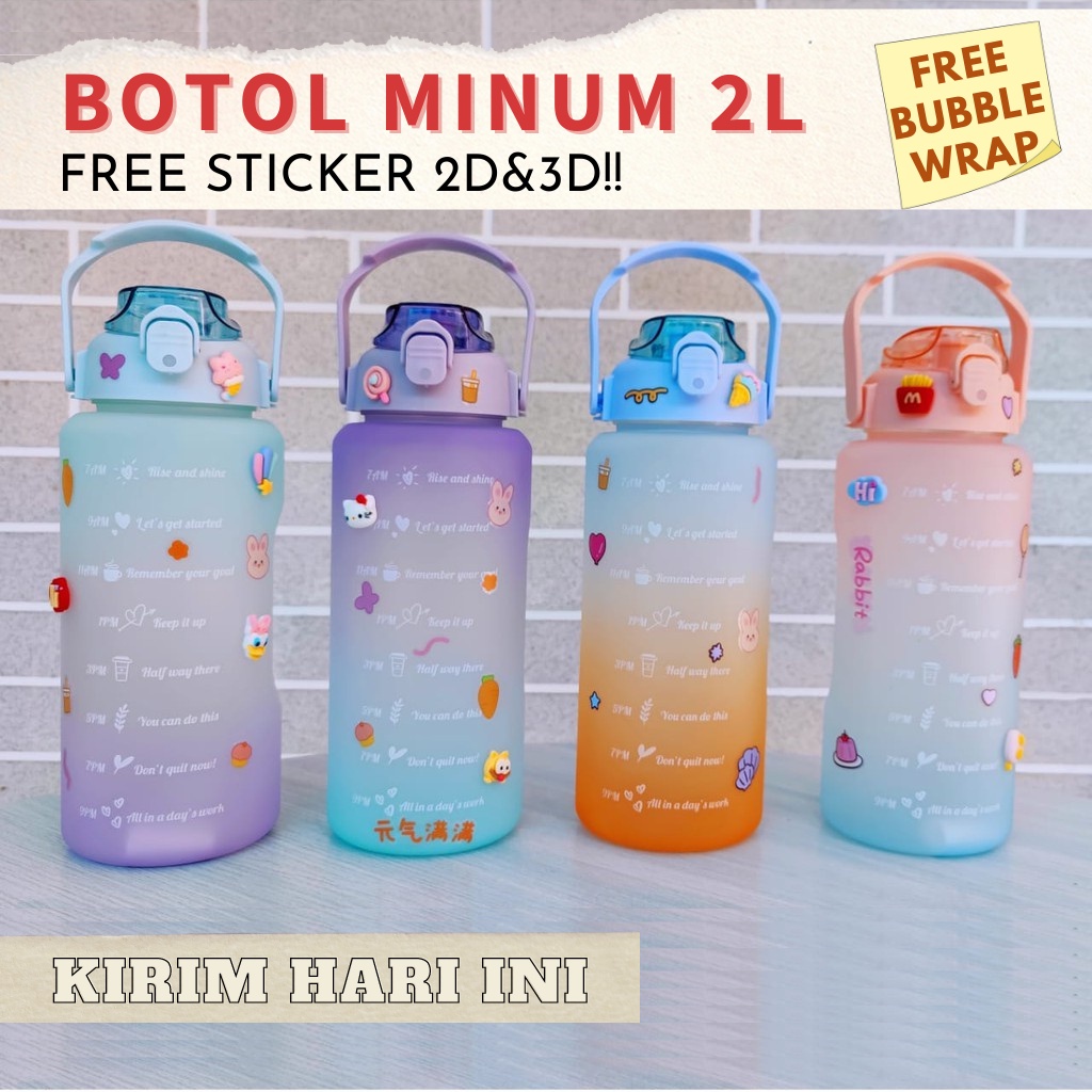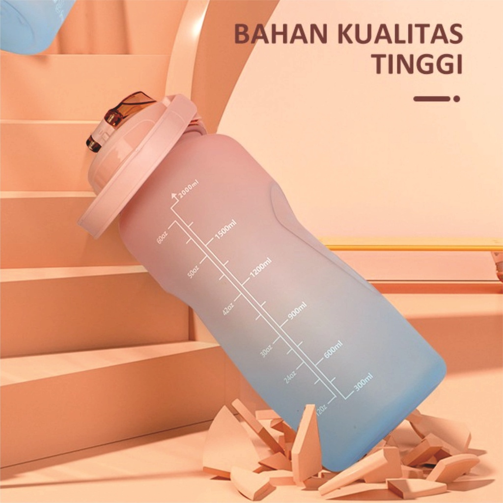 Botol Minum 2 Liter 2000ML Botol Minum Viral Botol Pelangi Botol Minum 2 L Botol Minum Motivasi Jumbo Korea