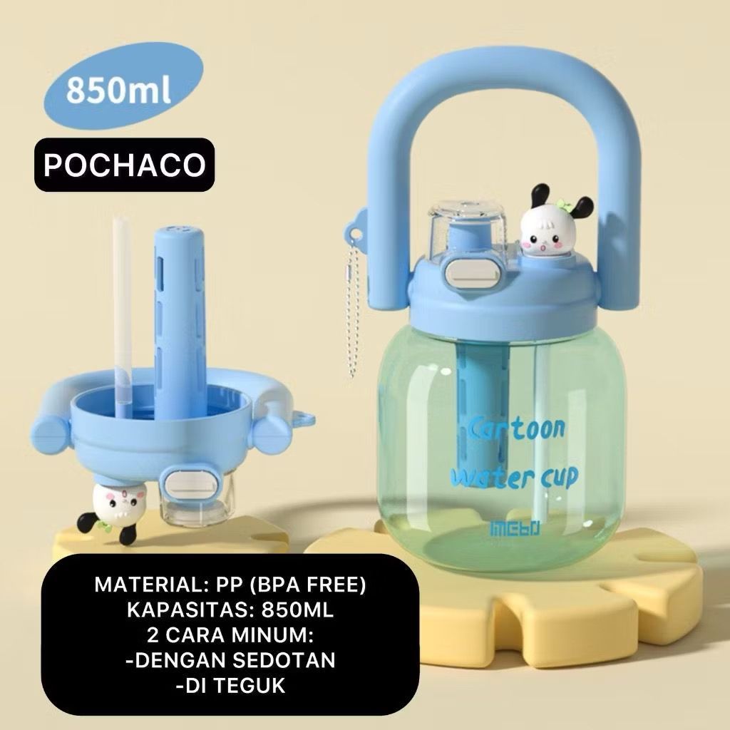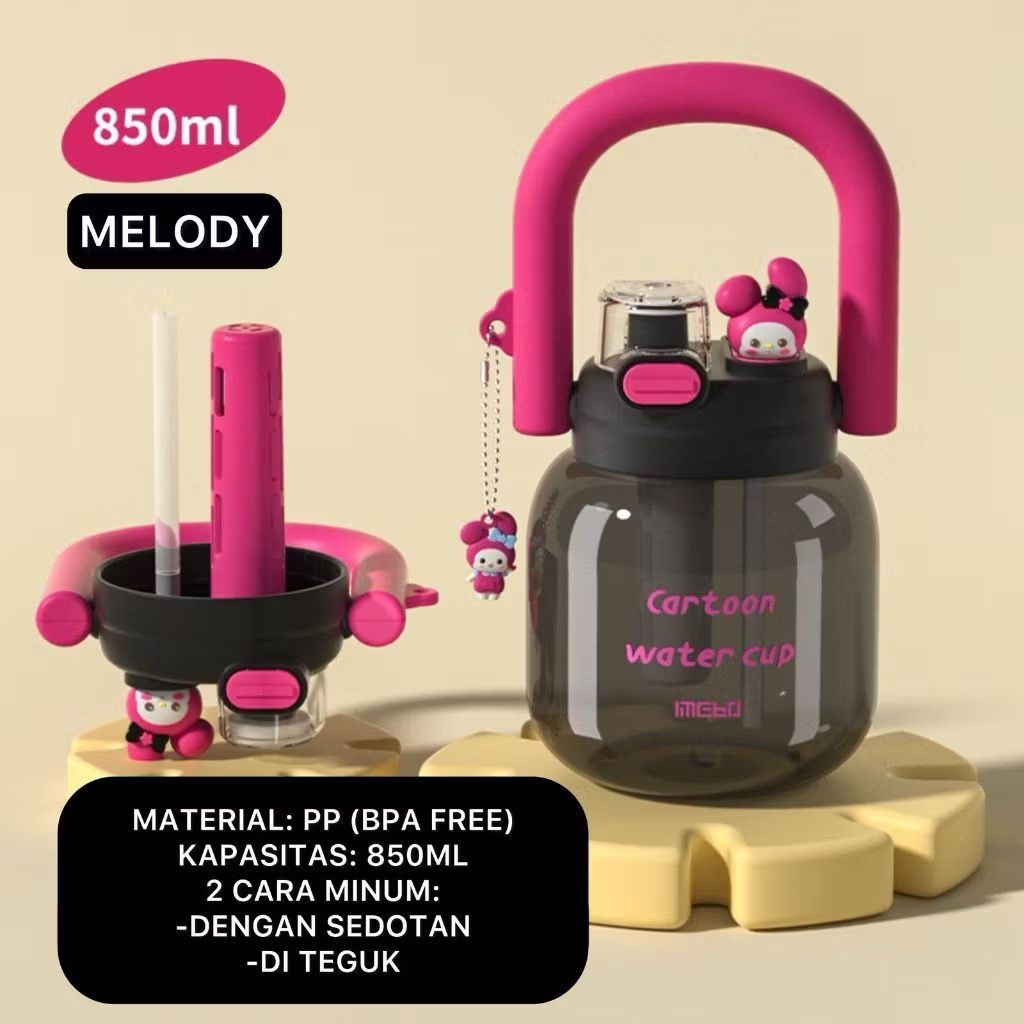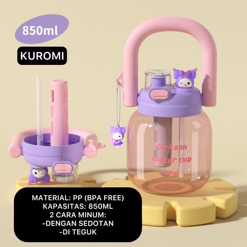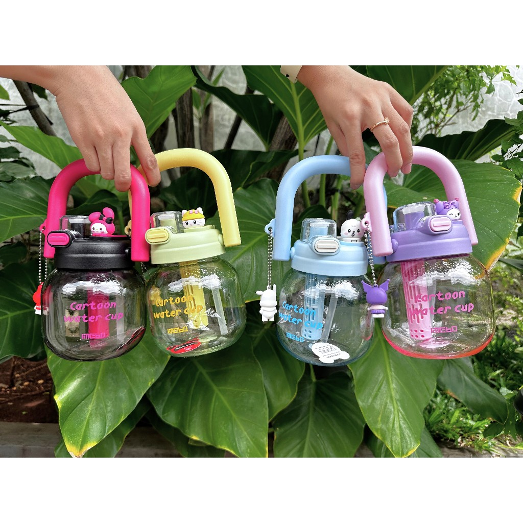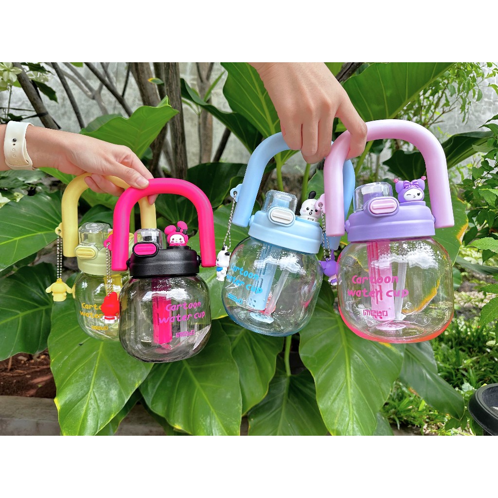 Botol Minum Infused Handle Transparant BPA FREE Sanrio 850ml Tumbler Minum 2 Cara Minum Kettle Gemoy Free Sedotan 3273