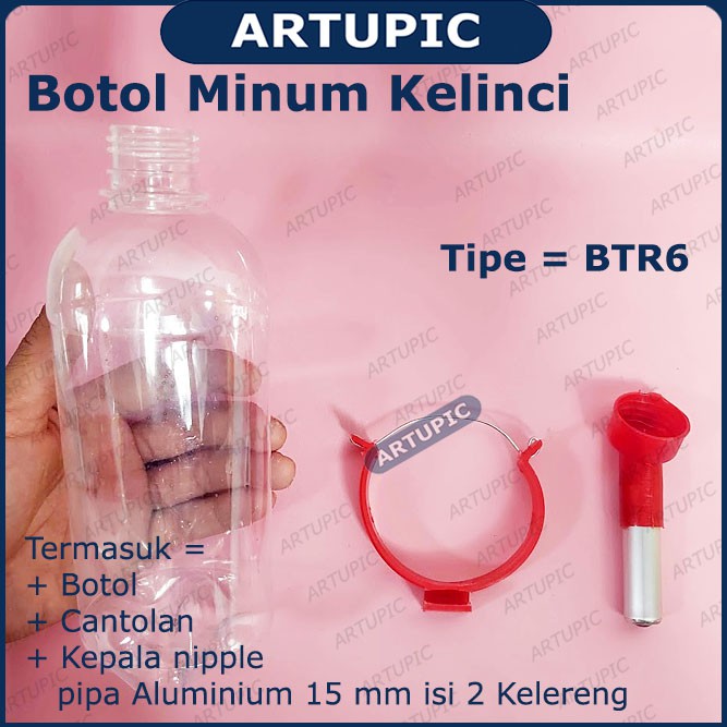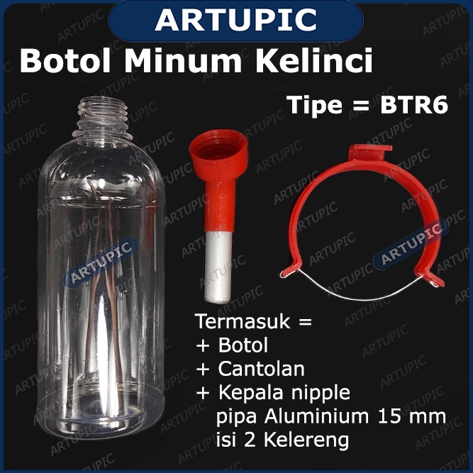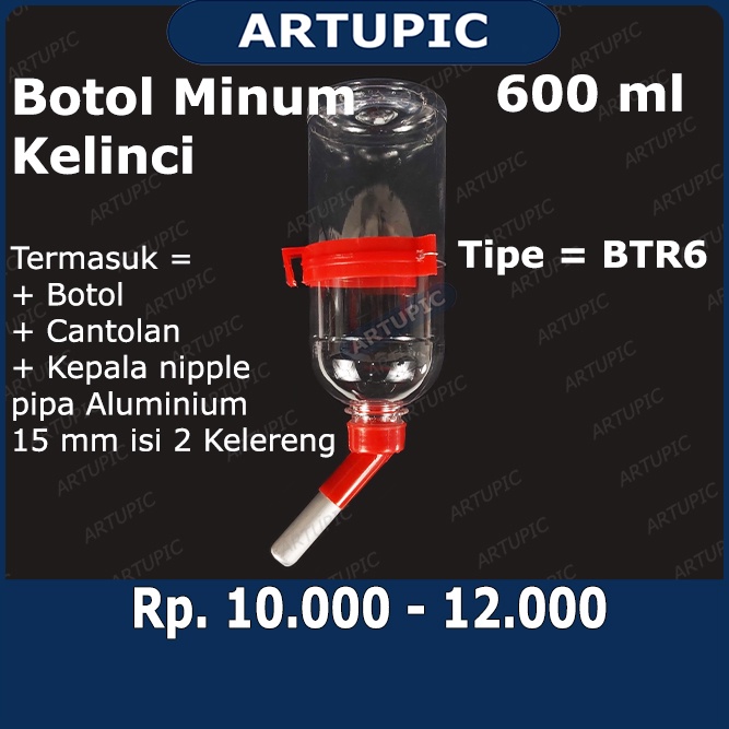 Botol Minum Kelinci 600 ml BTR6 Aluminium Isi Kelereng Dot Tempat Minum Kelinci Hamster Marmut Murah