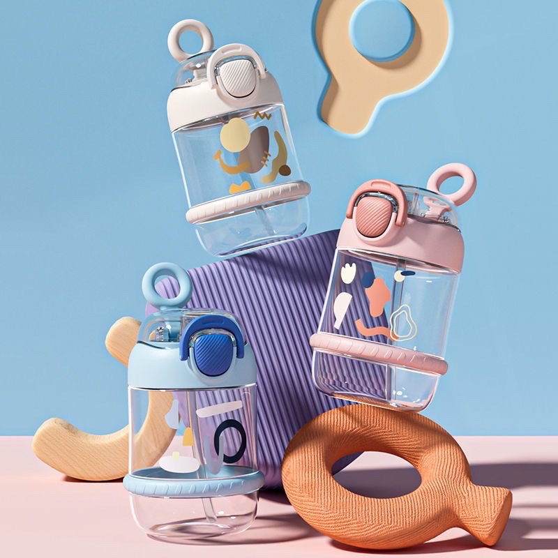 Botol Minum Modern NEW Minimalis Motif Kapsul / Botol Minum Plastik Tentengan Free Stiker 2D 450ml 760