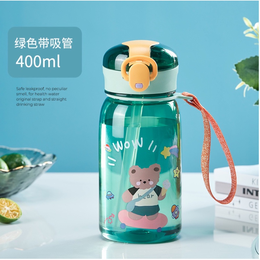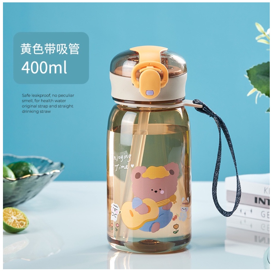 SH38 - Botol Minum Motif Karakter Lucu Anak Anti Pecah Anti Tumpah 400 ML BPA FREE Import - Botol Air Infused Water Ada Penyaring FREE TALI