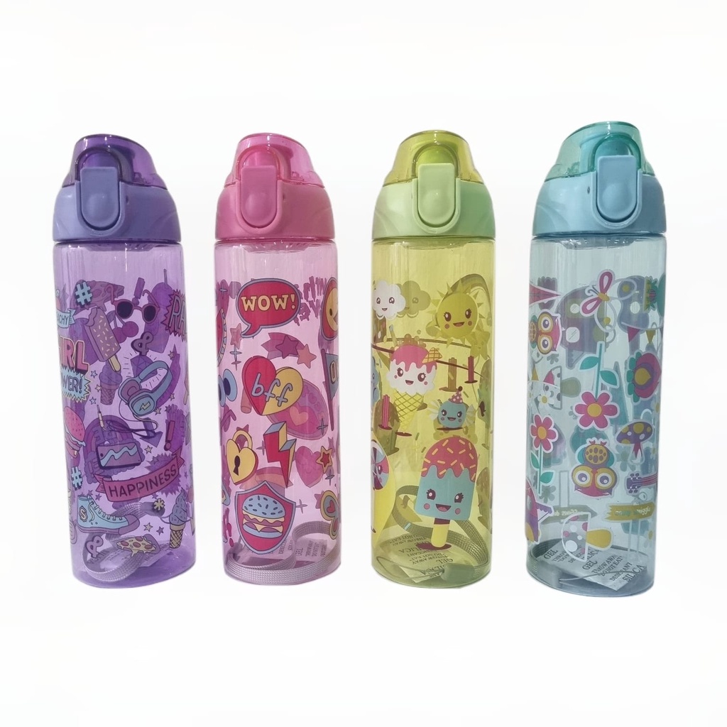 Botol Minum Motif Lucu Warna Warni 600ML Botol Minum Plastik - HX658