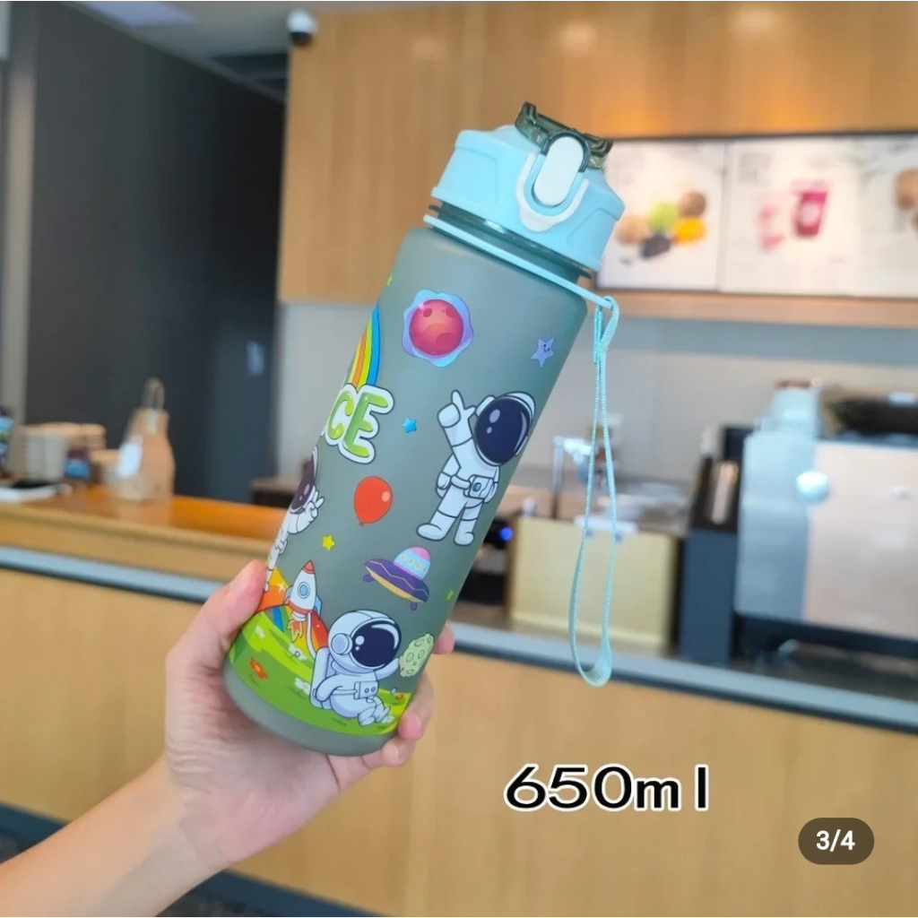 Botol Minum Portabel SPACE 650ml / Botol Tali Pendek Anak Dewasa Motif Karakter Astronot 397 011
