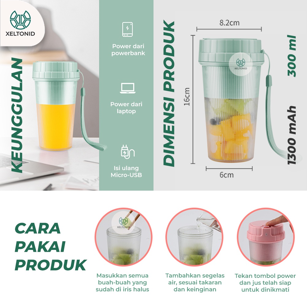 Botol Minum Portable Mini Juicer Blender Instant Botol Juice 2in1 Botol Jus Isi Ulang Charger 300ml