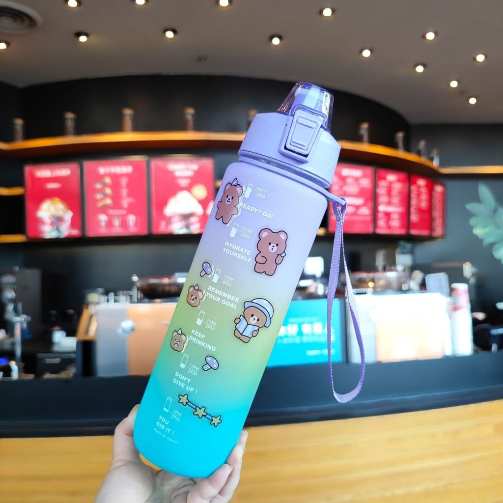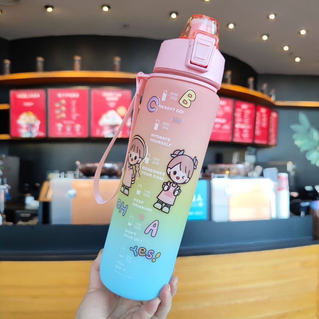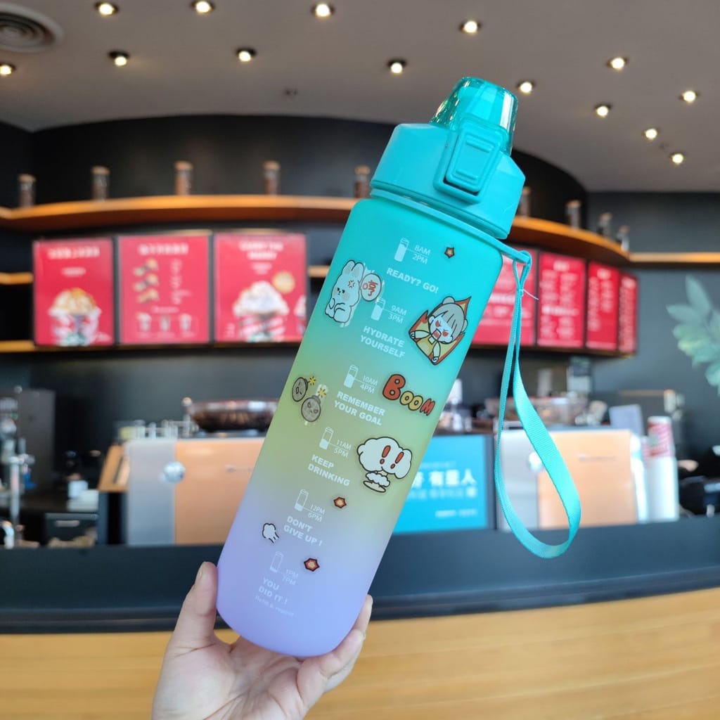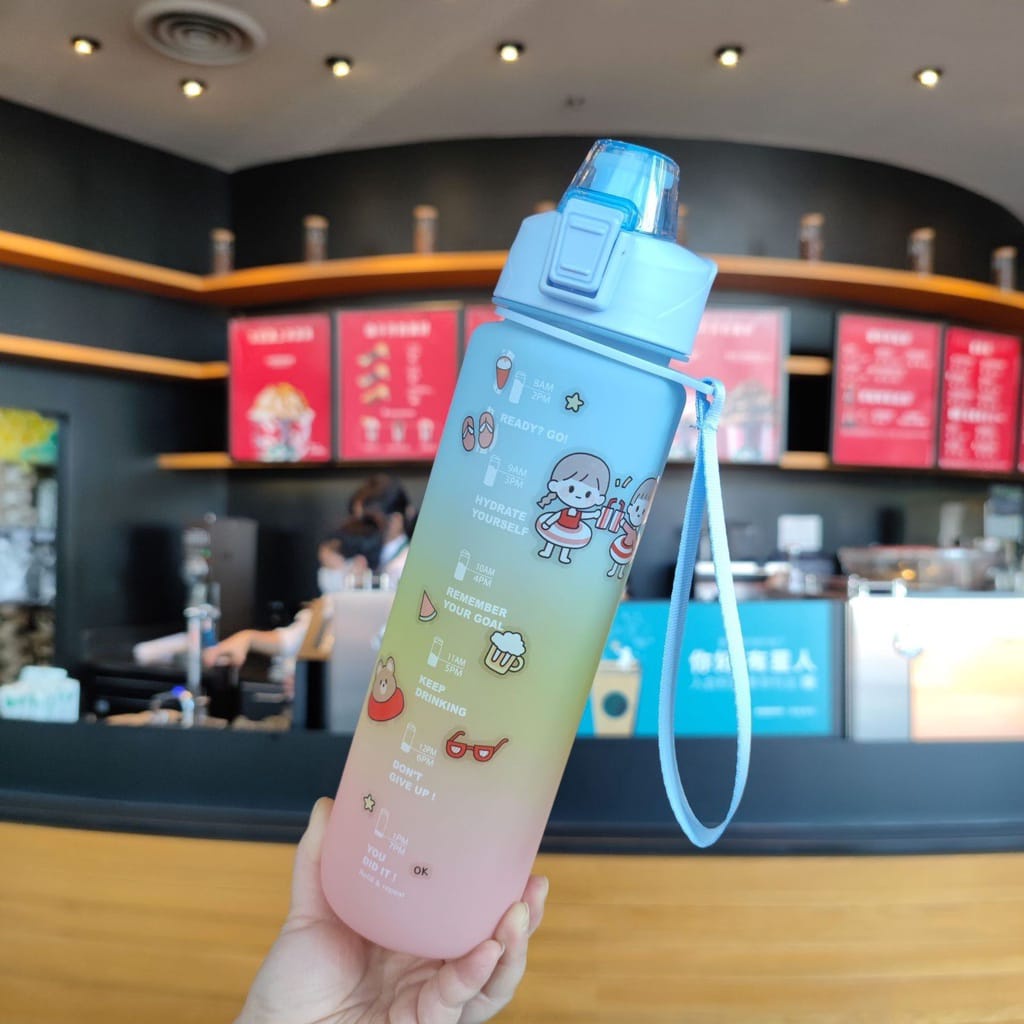 Botol Minum Tumbler 1L / Botol Minum 1 Liter Penanda Gradient Gradasi / Botol Minum Motivasi 1000ML