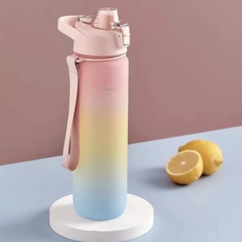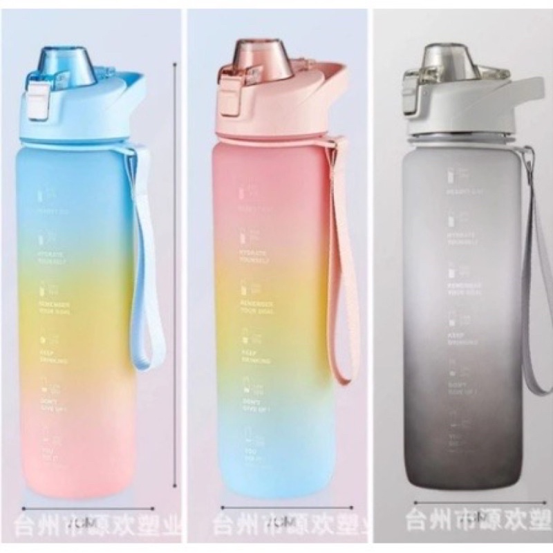 Botol Minum Tumbler Olahraga Sport Unik 1L FREE Stiker 2D+3D / Botol Motivasi 1000ML / Botol Penanda Gradient Gradasi