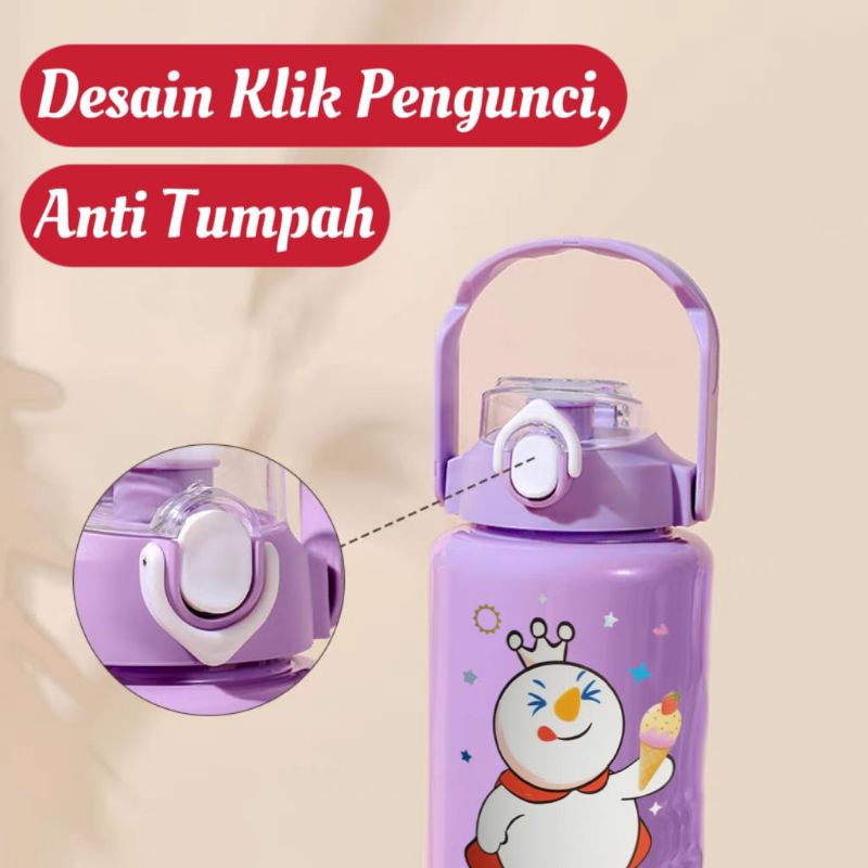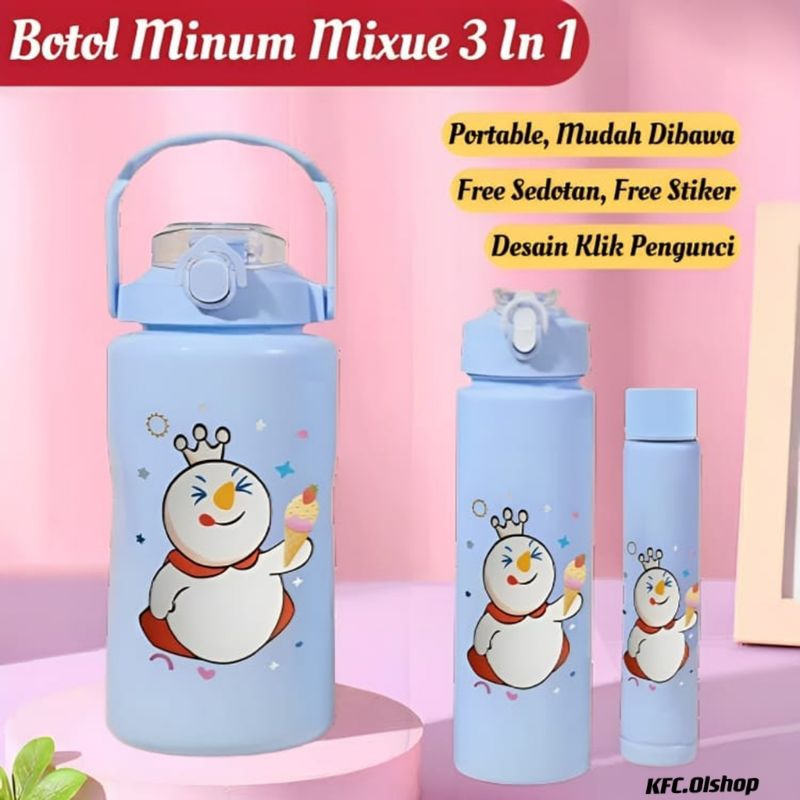 Botol Mixue 3 In 1 / Botol Beranak Mixue / Botol Minum Kapasitas 2000 ml 900 ml 350ml Free Stiker Free Sedotan