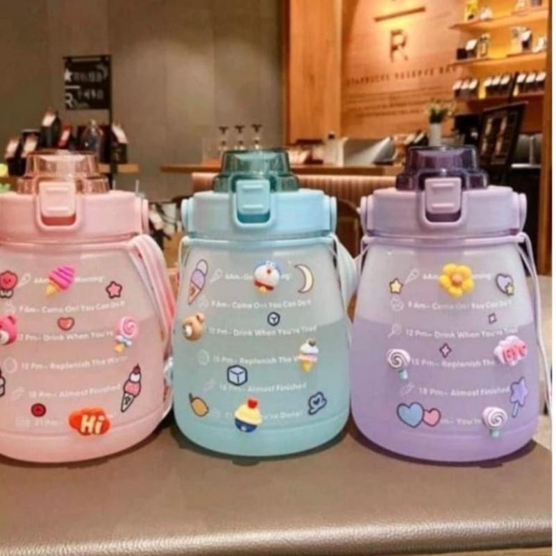 Botol Motivasi VIRAL GEMOY 1,3 Liter Botol Gendut Gradasi Penanda Waktu Big Belly Botol Viral plus stiker & Tali CHOCHO 88 SHOP ,,