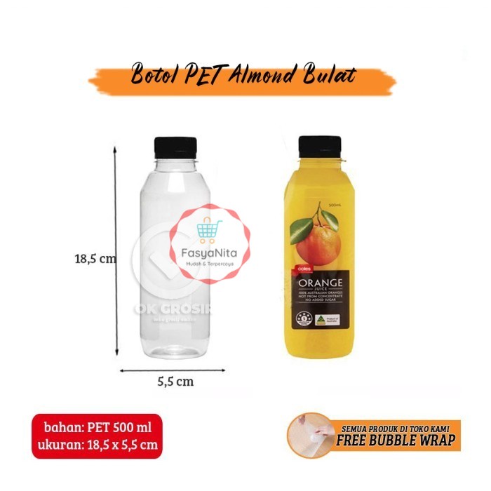Botol PET Almond Bulat 500 ml / Kale / Botol Kopi Jus [1 pcs] - FasyAnita Mart Denpasar