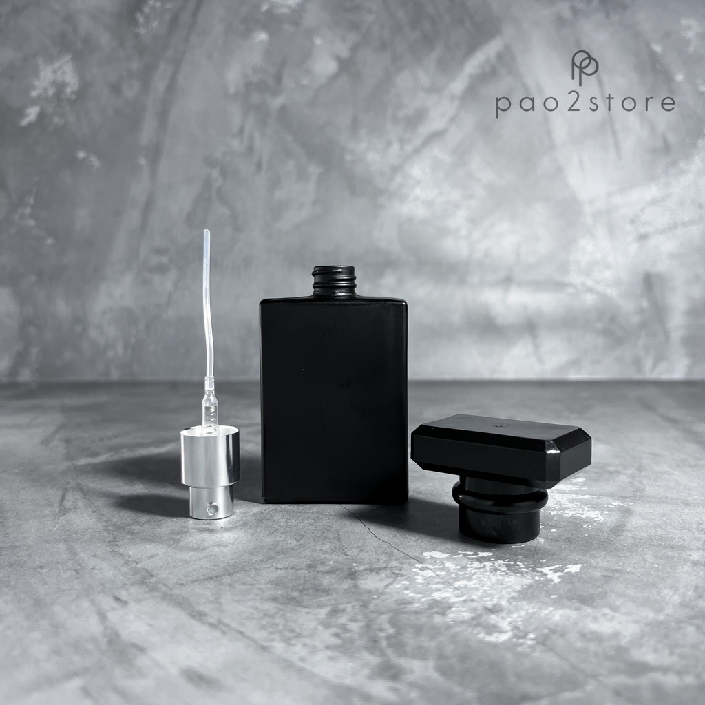 Botol Parfum 30ml Spray Kaca Kotak Tebal HITAM DOFF Refill Isi Ulang Perfume Minyak Wangi - CHA