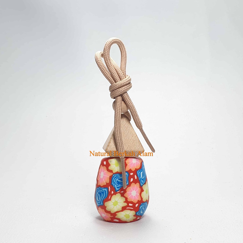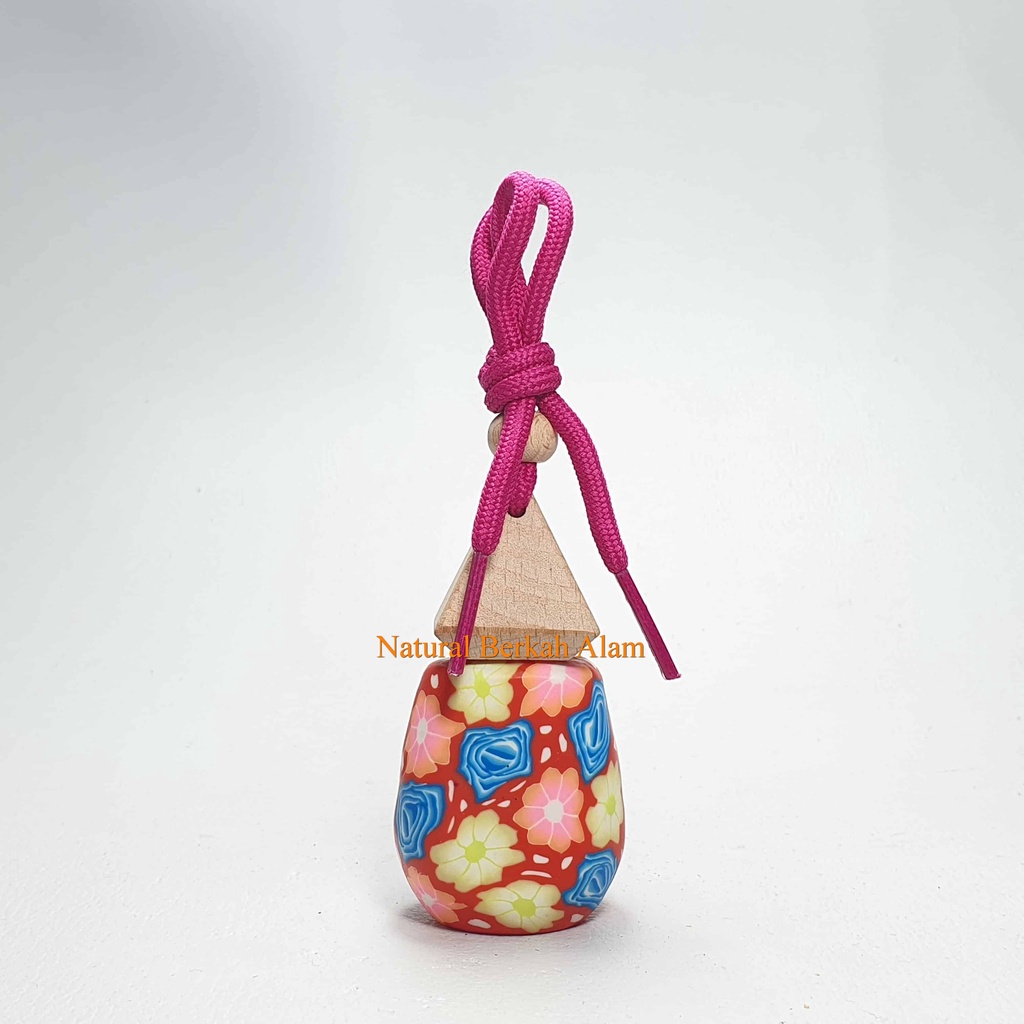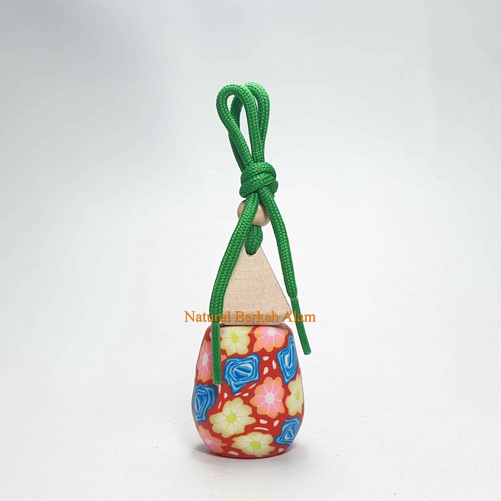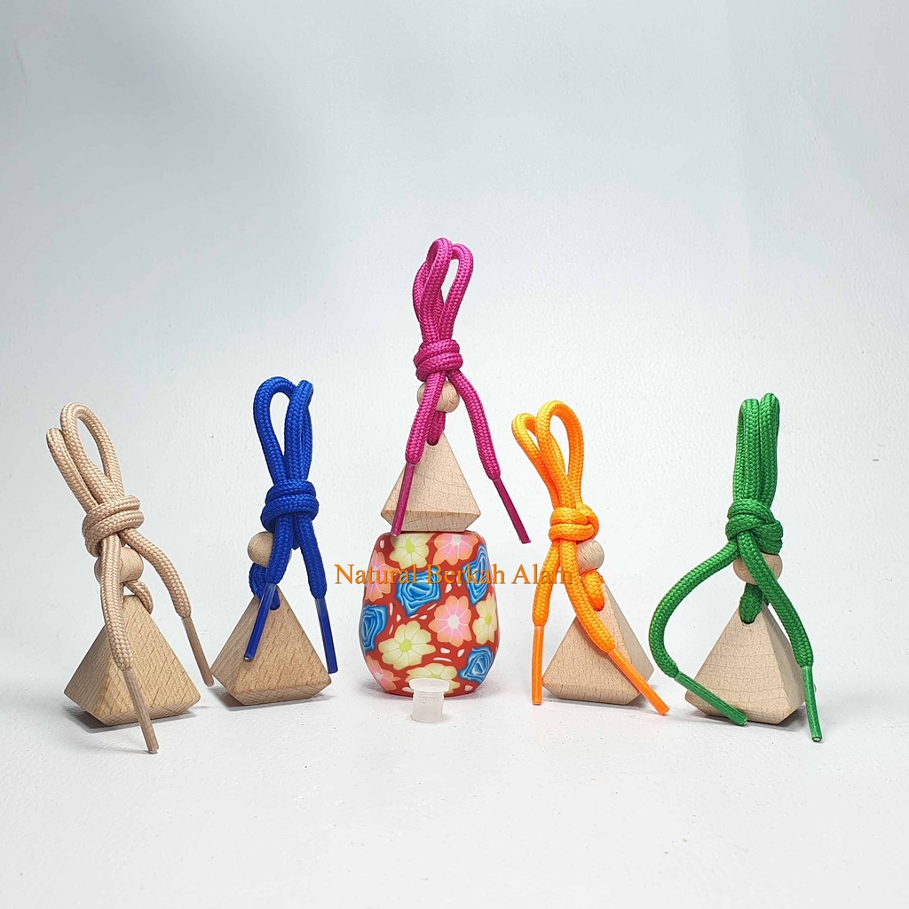 Botol Parfum Gantung 8 Ml Oval Print Warna Tutup Kayu Segitiga / Botol Kaca / Botol Kaca Parfum / Botol Parfum Mobil / Botol Tali Parfum / Botol 8 Ml