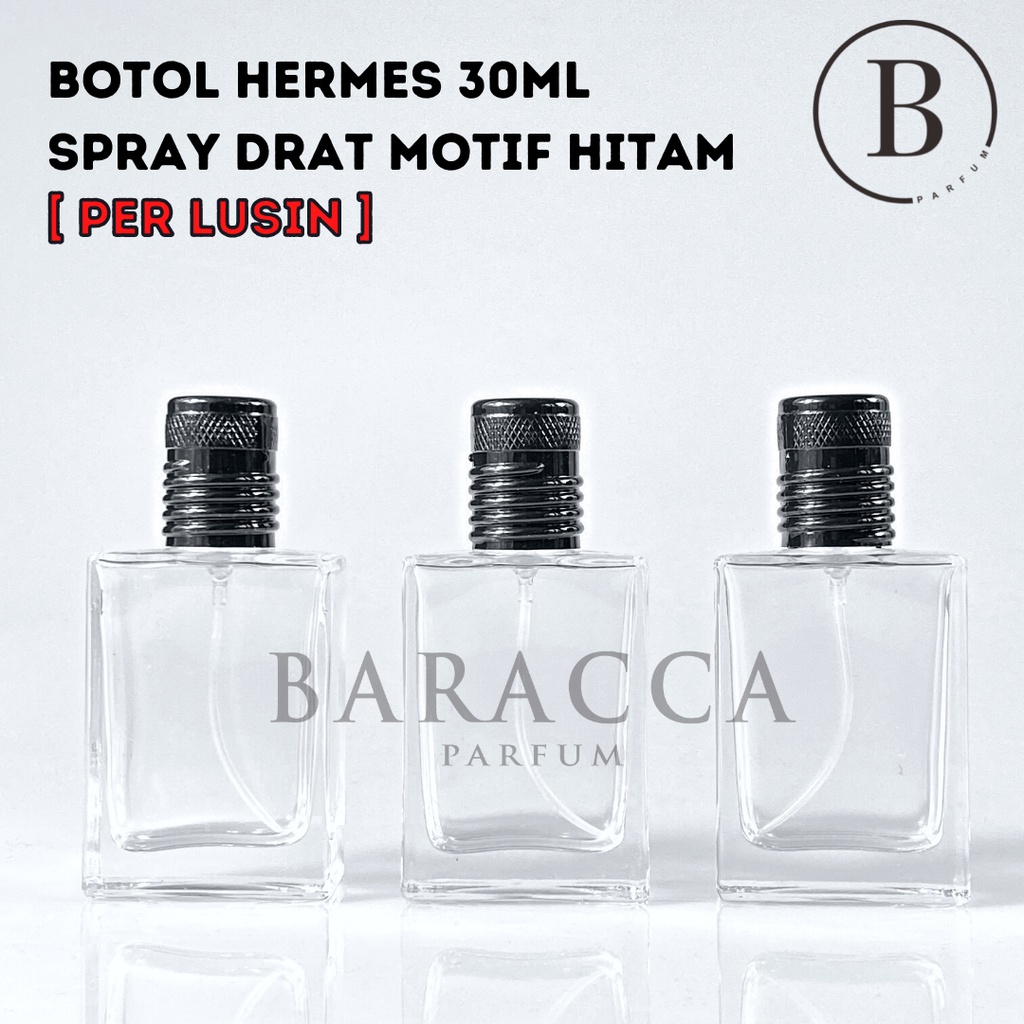 Botol Parfum Hermes 30ML Drat Tutup Hitam Motif - Botol Parfum Kosong Hermes - Botol Parfum Kaca 30ML