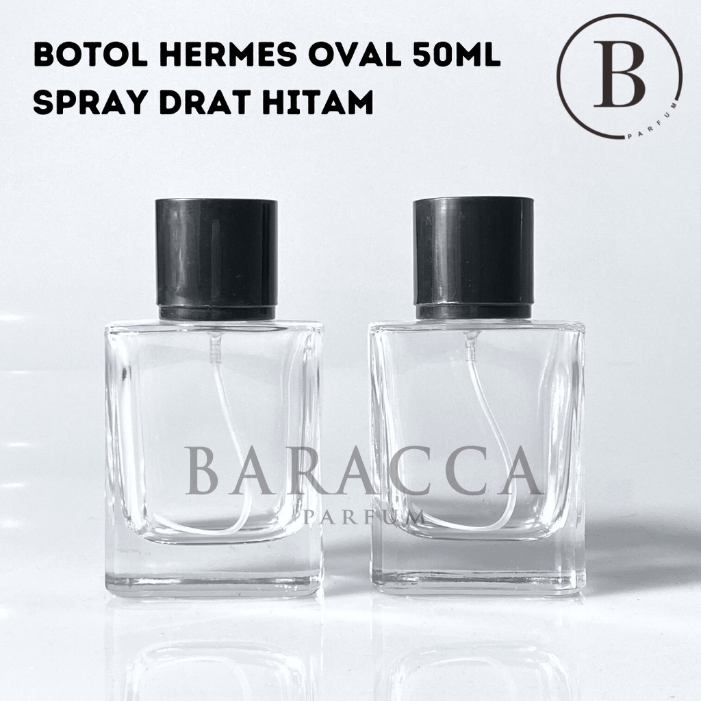 Botol Parfum Hermes 50ML Drat Tutup Oval Hitam - Botol Parfum Kosong Hermes Hitam - Botol Hermes 50ML