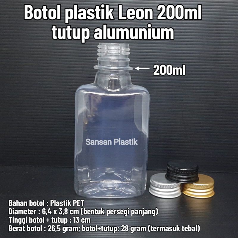 Botol Plastik 200 ml Tutup Alumunium / Botol Leon 200ml Tutup Alumunium