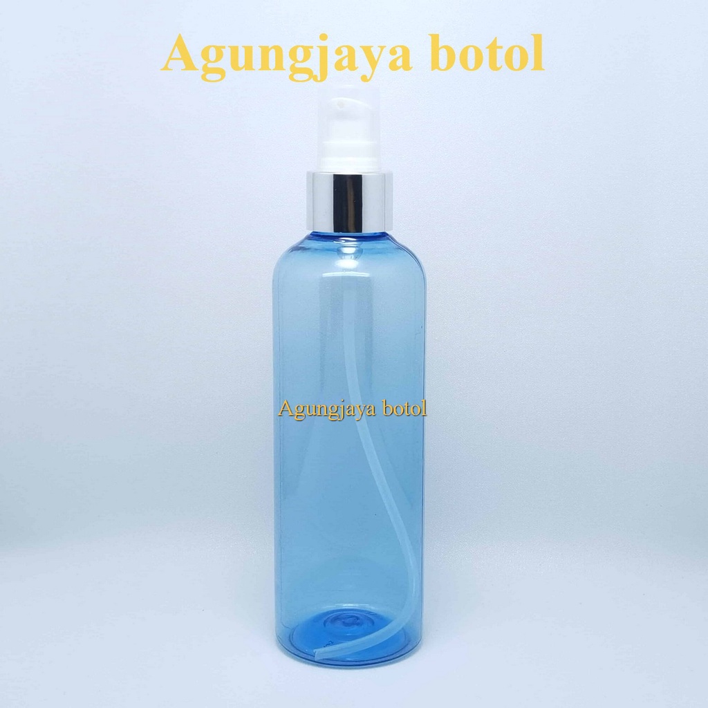 Botol Plastik 250 Ml Br Biru Tutup Pump Treatment / Botol Pet Kosmetik / Botol Pump Treatment / Botol Skincare / Botol Lotion / Botol 250 Ml