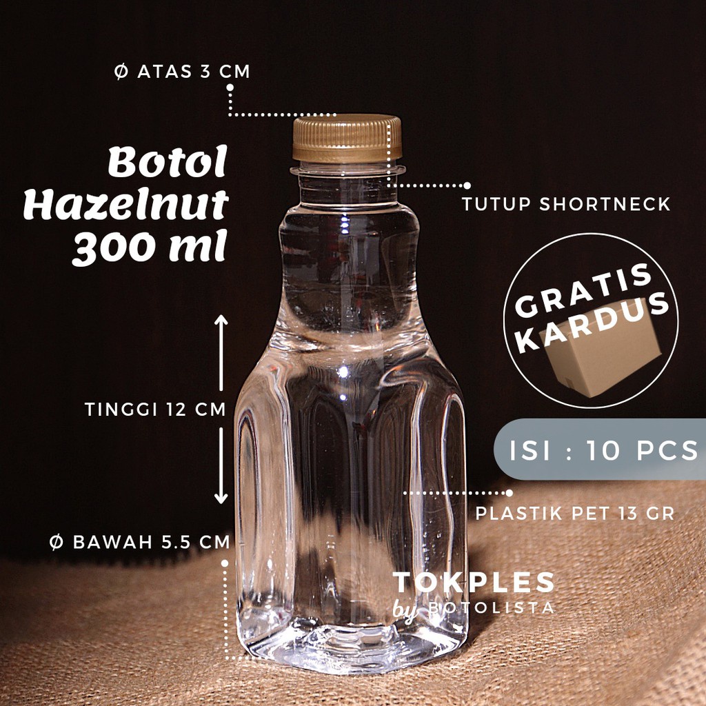 Botol Plastik 300 ml FREE Kardus Botol Soya Botol Sania Botol Hazelnut Botol cantik