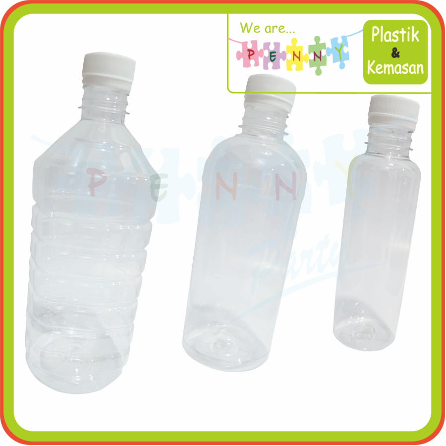 Botol Plastik Bening Transparan + Segel Tutup 100% New Berbagai Ukuran Botol Kopi Minuman Kekinian