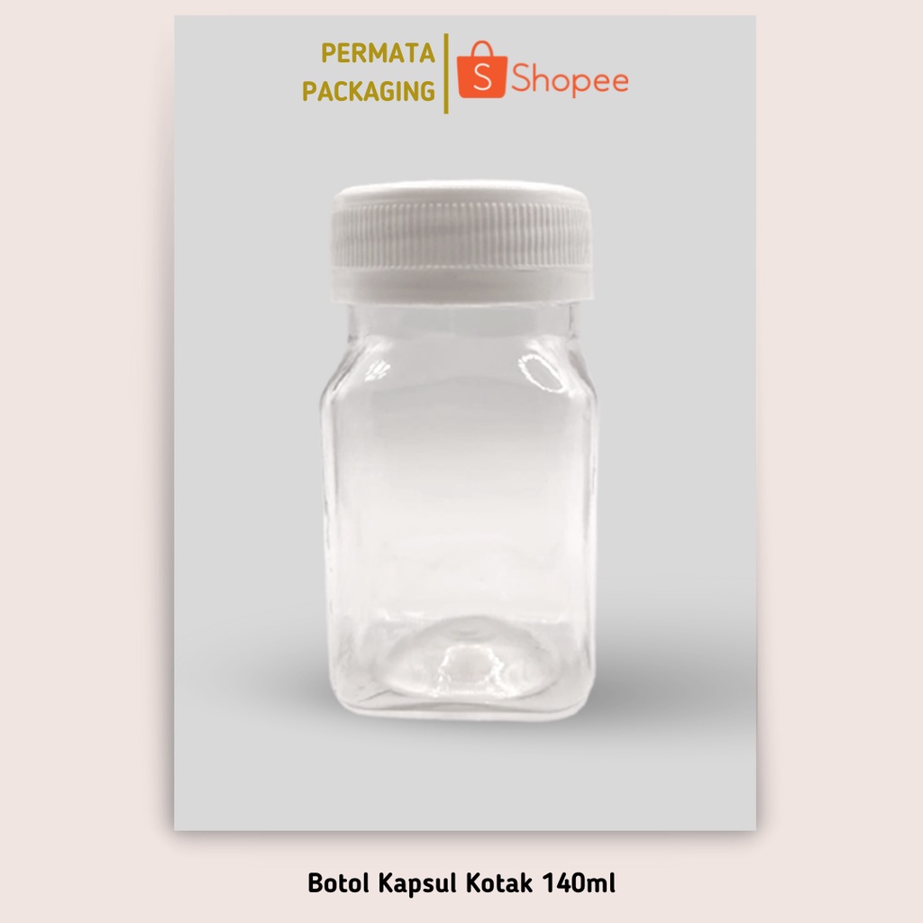 Botol Plastik Kapsul Kotak 140ml / Botol Kotak Pil 140ml / Botol Obat 140ml
