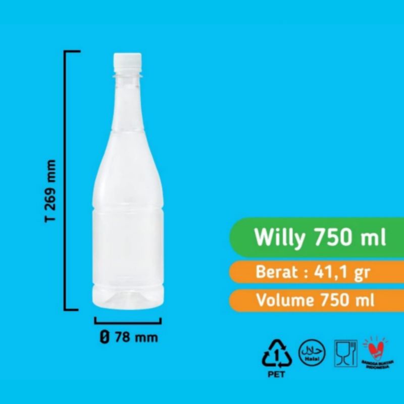 Botol Plastik Willy 750ml Tutup PUTIH / Botol minum syirup coffe 750 ML Round/ Botol unik tebal