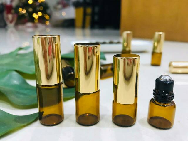 Botol Roll on Roller Kaca Amber Botol Kaca Roller Amber Botol Coklat Rollon tutup gold tebal dottera botol travel traveling parfum perfume parfume